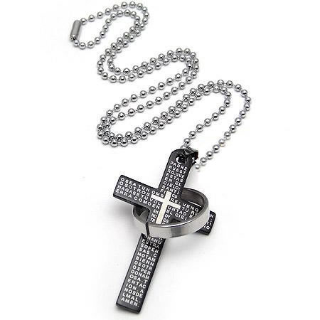 韓式聖經鈦鋼十字架項鍊(黑)