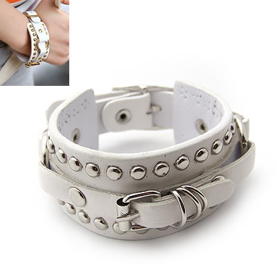 韓式皮革百塔時尚圓孔鉚釘手鍊(白)