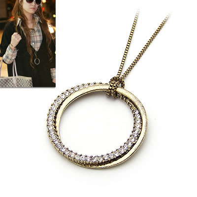 韓式青銅双圓釀鑽項鍊