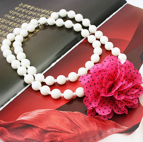 韓式紅色花朵串珠項鍊