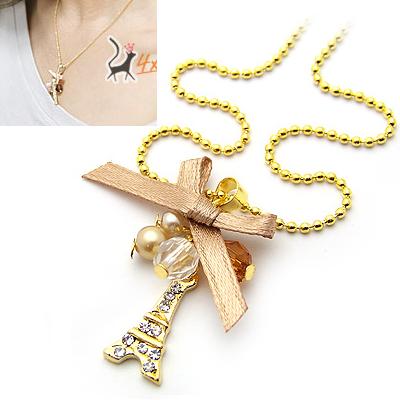韓式蝴蝶結珍珠鐵塔項鏈