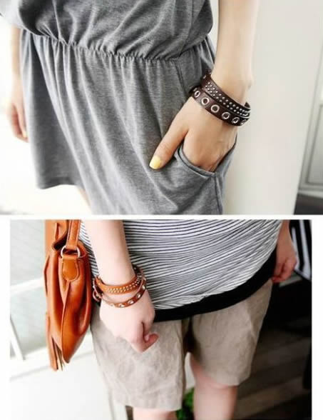 韓式皮革圓孔鉚釘手鍊(咖啡)